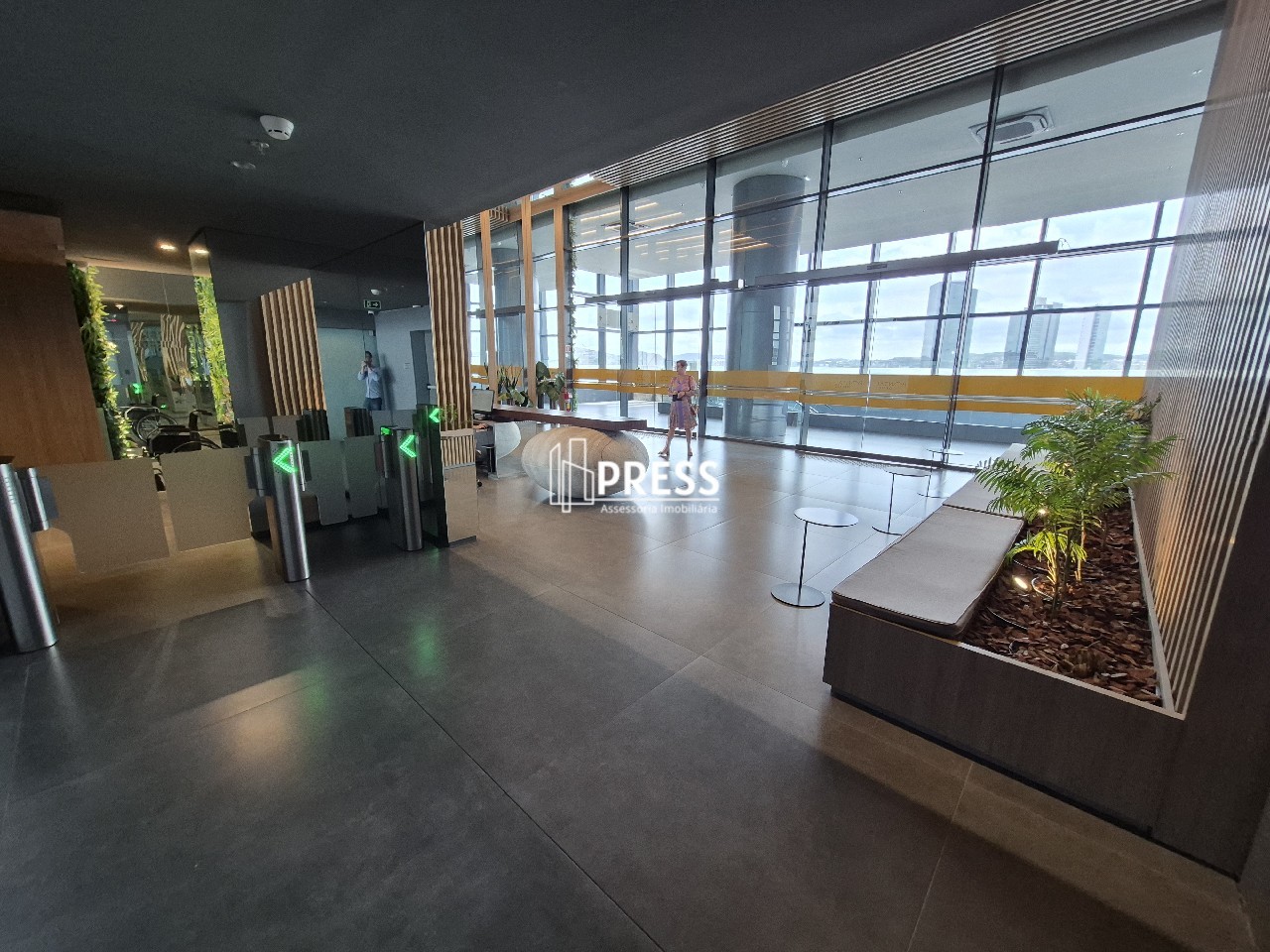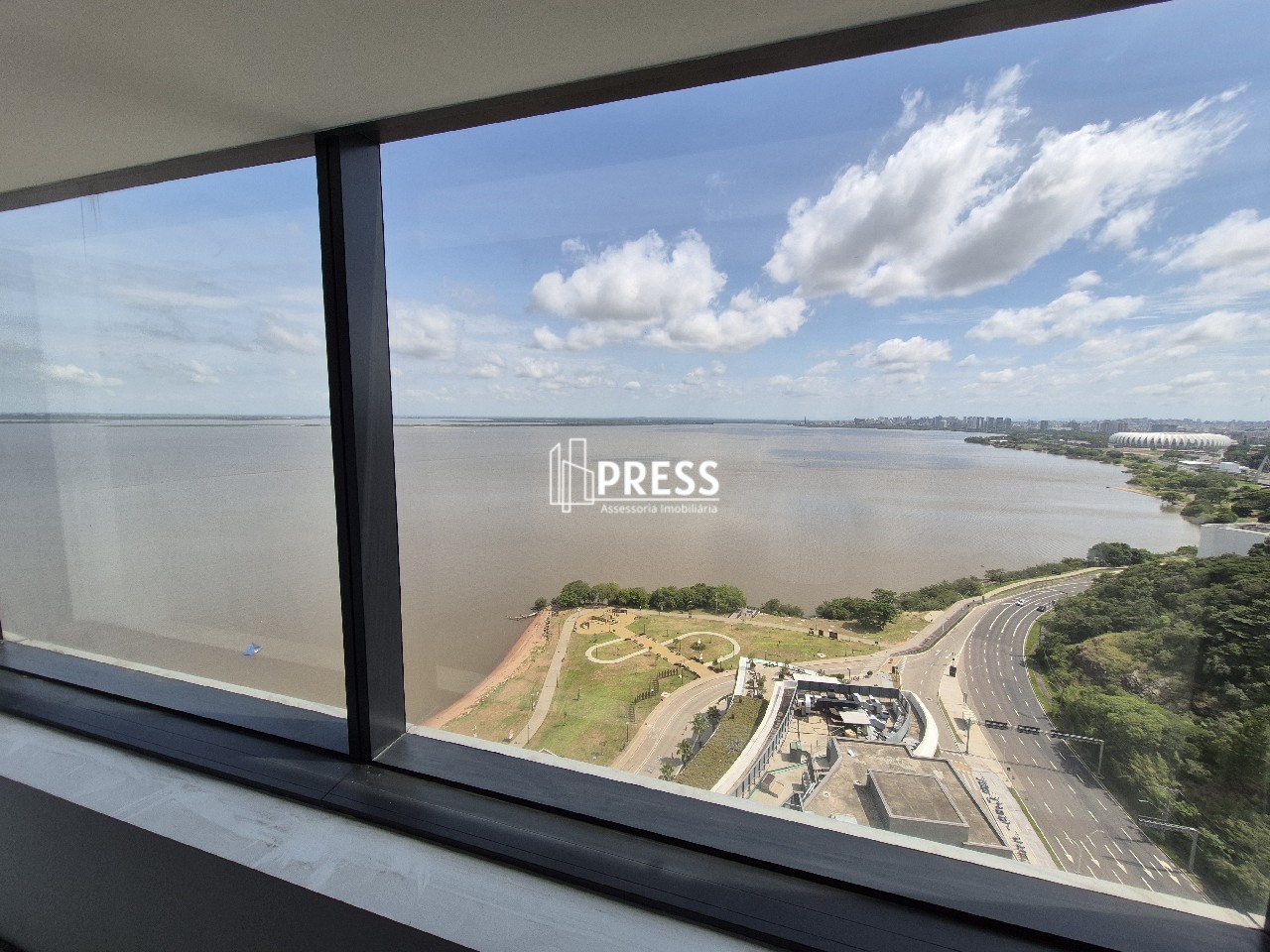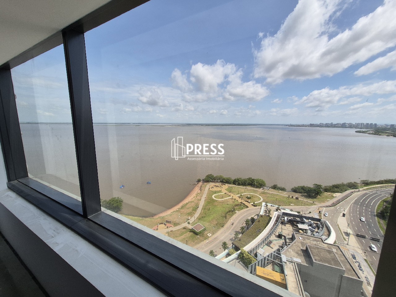 SALA NO PONTAL SHOPING ANDAR ALTO COM GARAGEMPRESS aluga excelente sala comercial em andar alto com 35m² privativo com vista espetacular do Guaíba, banheiro e 1 vaga de garagem.