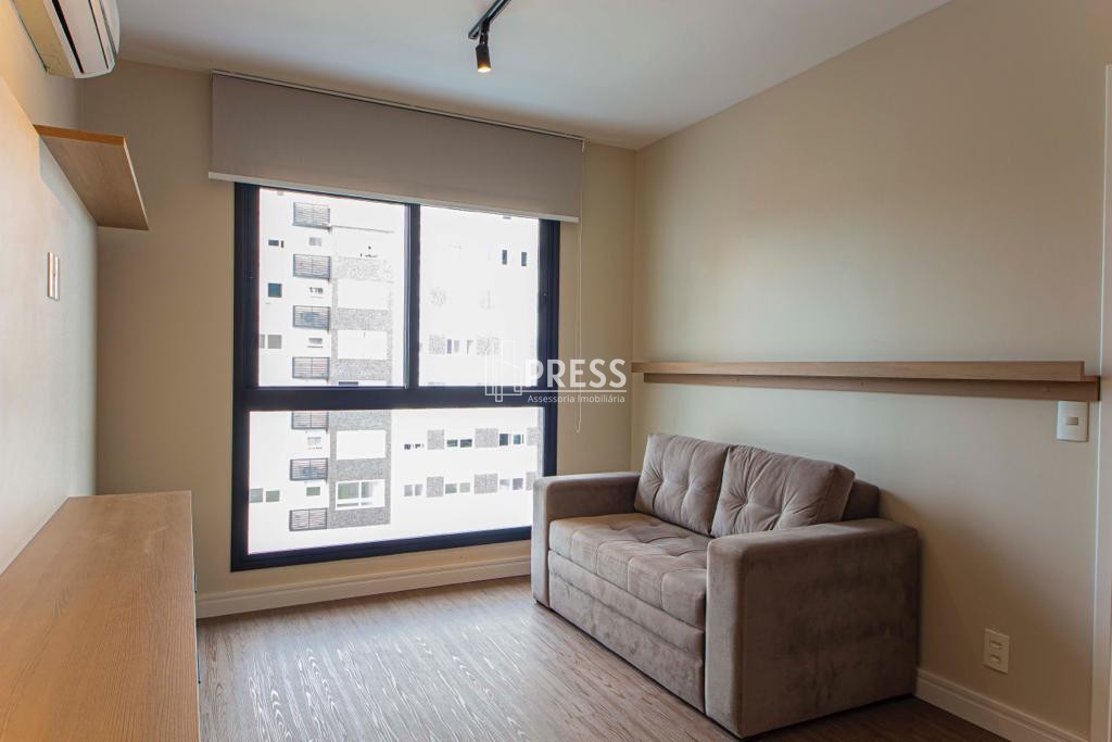 PRESS vende apartamento novo de 1 dormitório, andar alto com sol da manhã, com vista panorâmica, com 41 metros privativos, completamente mobiliado e decorado, móveis sob medida, 1 suíte, lavabo, living, churrasqueira, cozinha americana e área de serviço.Vaga de garagem escriturada coberta no prédio garagem.