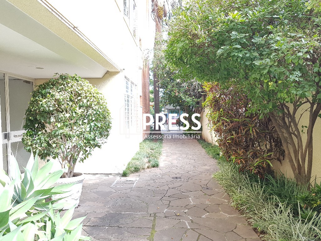 PRESS vende ótimo apartamento garden de 02 dormitórios, garagem coberta e escriturada, amplo pátio (sensação de morar numa casa) com árvores frutíferas, churrasqueira particular e ainda espaço para horta, ótima segurança com cerca eletrônica e gradeado, conta com amplo closet podendo servir como gabinete, 3º dormitório ou ainda sala de estar, água quente (gás central), living dois ambientes, varanda, split/ar condicionado nos dormitórios e sala, conta ainda com banheiro social e auxiliar completo, cozinha com armários, área de serviço separada, lavanderia, dependência de empregada.Condomínio Lindo e muito arborizado, gás central e com baixo custo condominial, possui sistema eletrônico de segurança como cerca eletrônica e fechadura Tag.