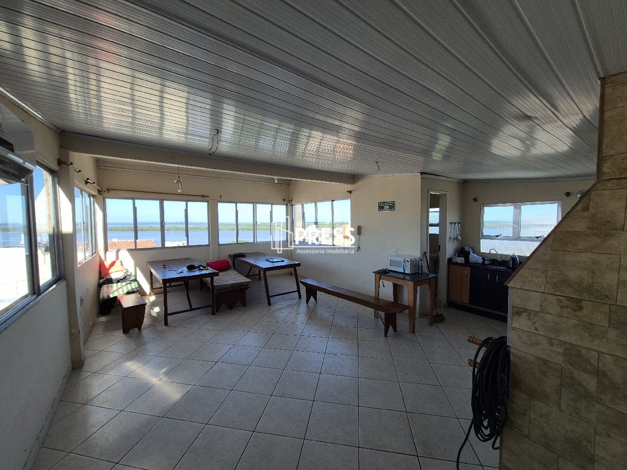 Salão de festas completo com churrasqueira e belissima vista panorâmica para o Guaiba e o Por do Sol.