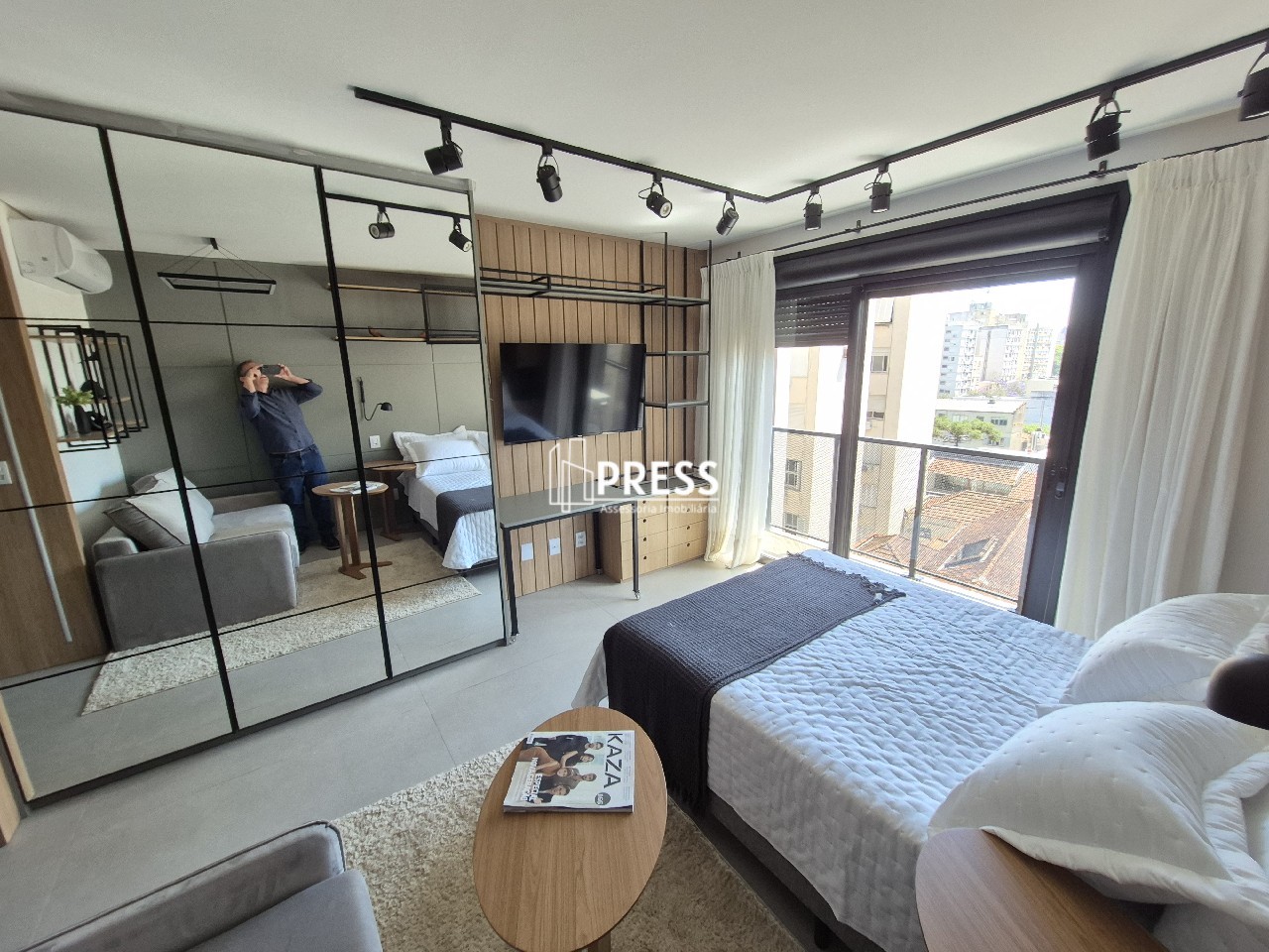 Loft NOVO com bela sacada, todo completo com móveis, eletrodomésticos e utensiluos com toda a infraestrutura de lazer e Rooftop na Rua da República 274 Condominio Soul República no coração da Cidade Baixa