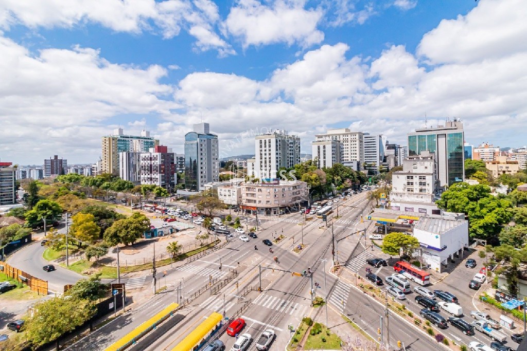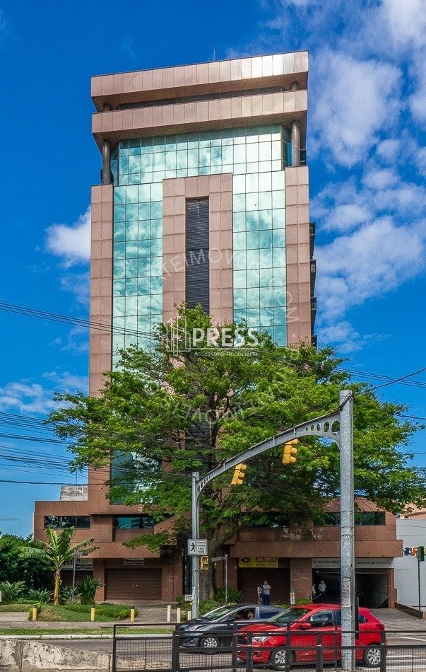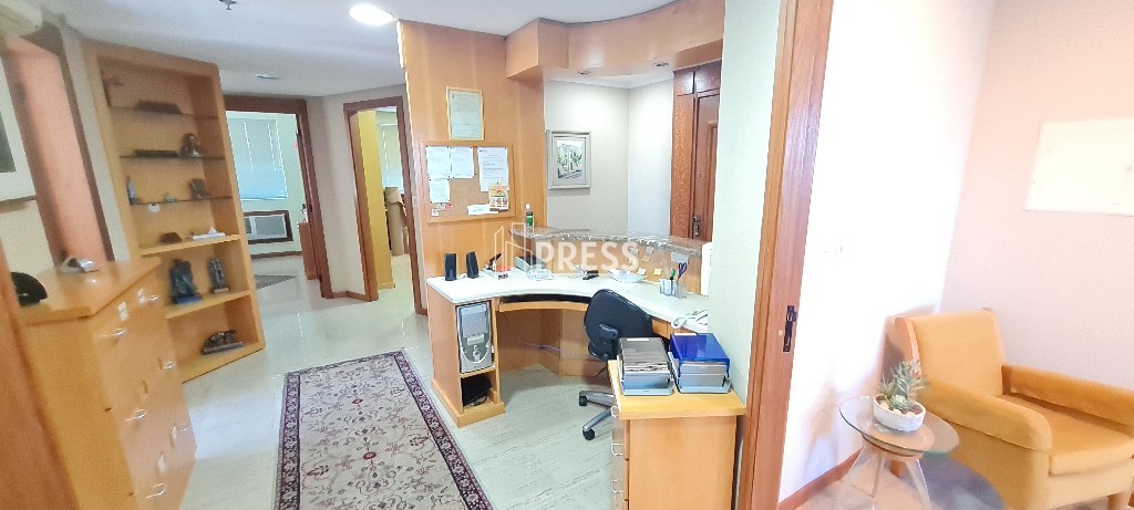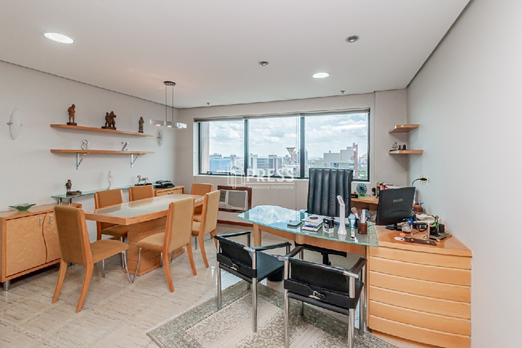 PRESS aluga alto padrão, lindo conjunto comercial com 135m² de área privativa, possui bela recepção, 02 banheiros, 05 salas individuais, sala de espera para cliente, cozinha e 03 vagas de garagem.Andar alto com belissima vista panorâmica inclusive para o Guaiba.