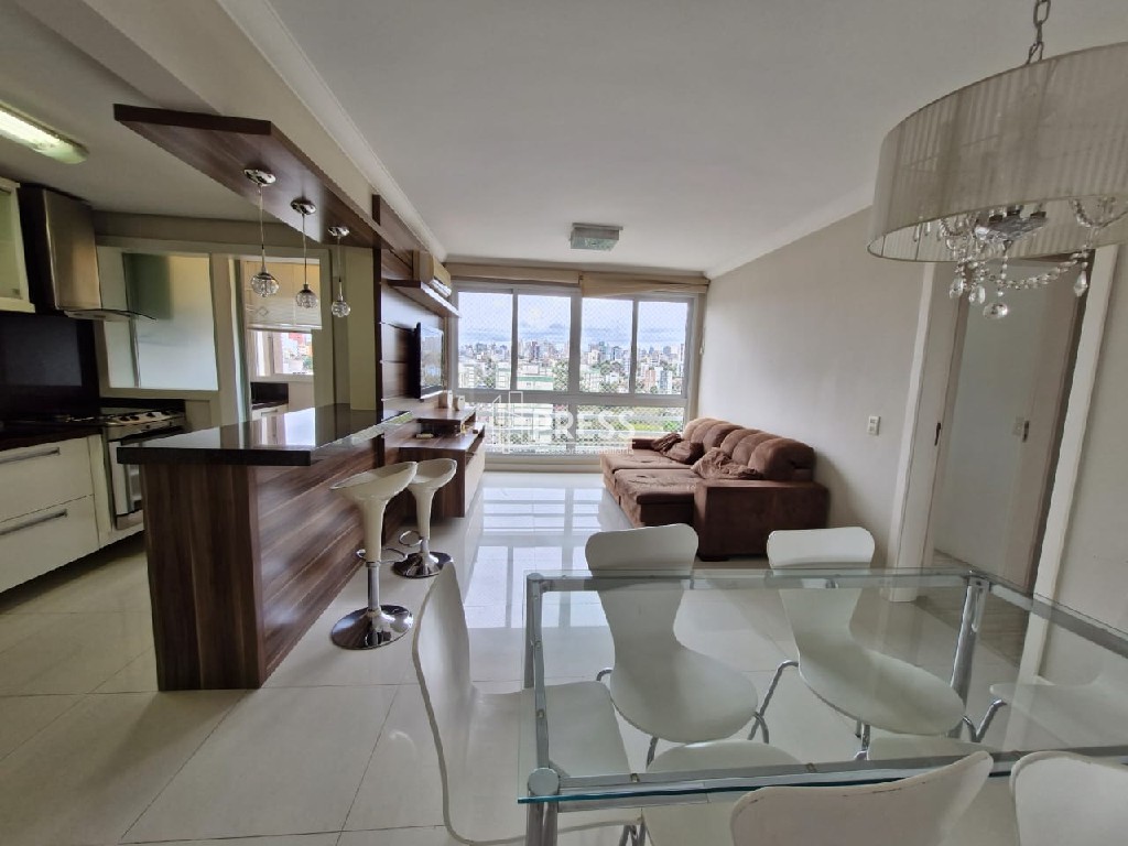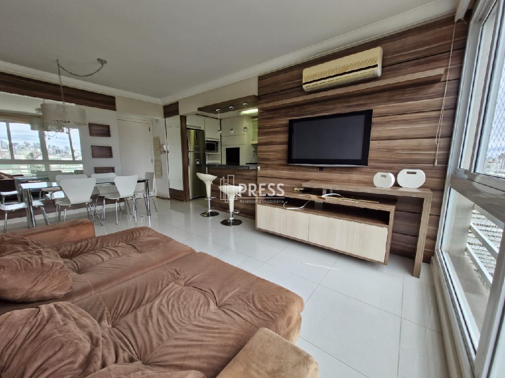 Apartamento semi mobiliado que conta com aproximadamente 70m² de área privativa. Esta metragem está distribuída em um amplo living com 2 ambientes integrado a uma bela cozinha americana, com churrasqueira privativa, seguida de uma área de serviço. O apartamento também conta com 2 dormitórios, sendo que um deles é uma suíte espaçosa.