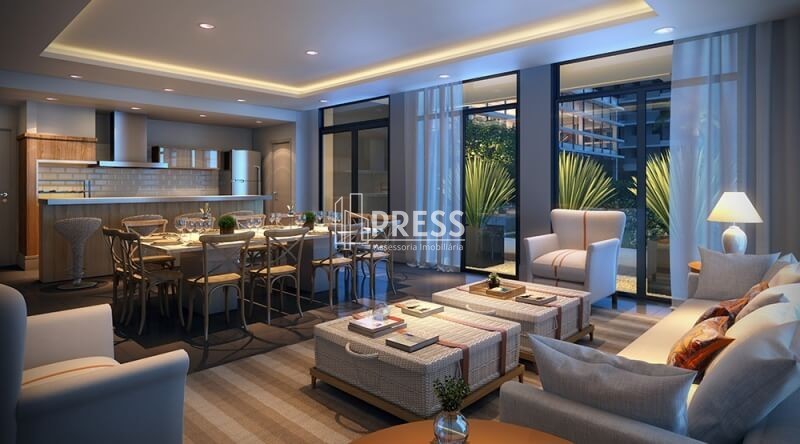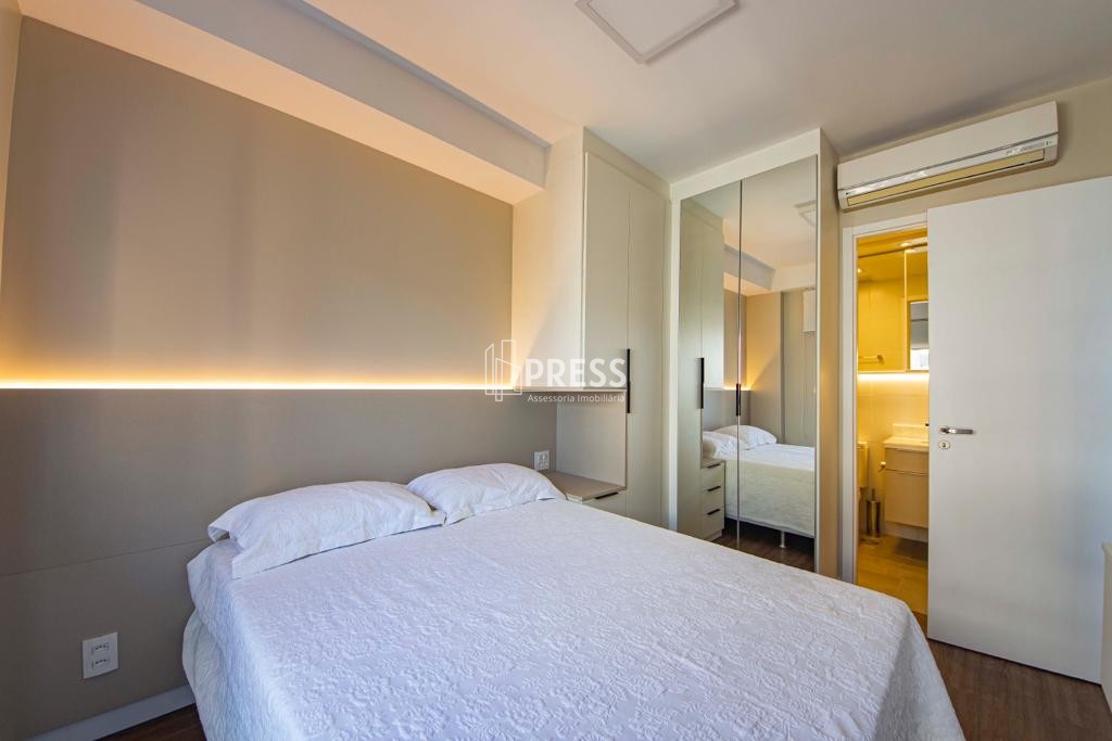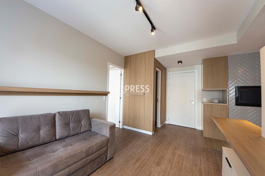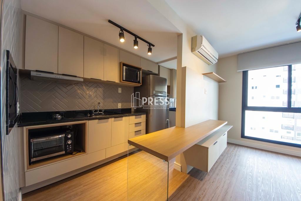 PRESS vende apartamento novo de 1 dormitório, andar alto com sol da manhã, com vista panorâmica, com 41 metros privativos, completamente mobiliado e decorado, móveis sob medida, 1 suíte, lavabo, living, churrasqueira, cozinha americana e área de serviço.Vaga de garagem escriturada coberta no prédio garagem.