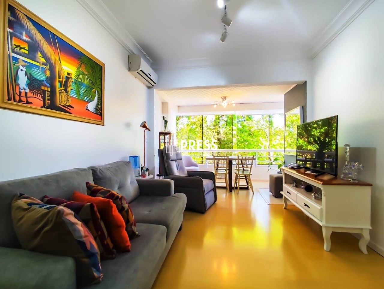 Apartamento com 3 dormitórios sendo 1 suite com sacada fechada, sala com 2 ambientes, churrasqueira, cozinha funcional com boa distribuição, área de serviço separada. Imóvel todo com vista para o verde da praça Conta com 1 vaga coberta e escriturada e possibilidade de alugar mais vagas Condominio com salão de festas, elevador, portaria virtual, hall de entrada, sistema de câmeras e eclusa de pedestresPermanecem móveis fixos, nos quartos, cozinha e banheiros