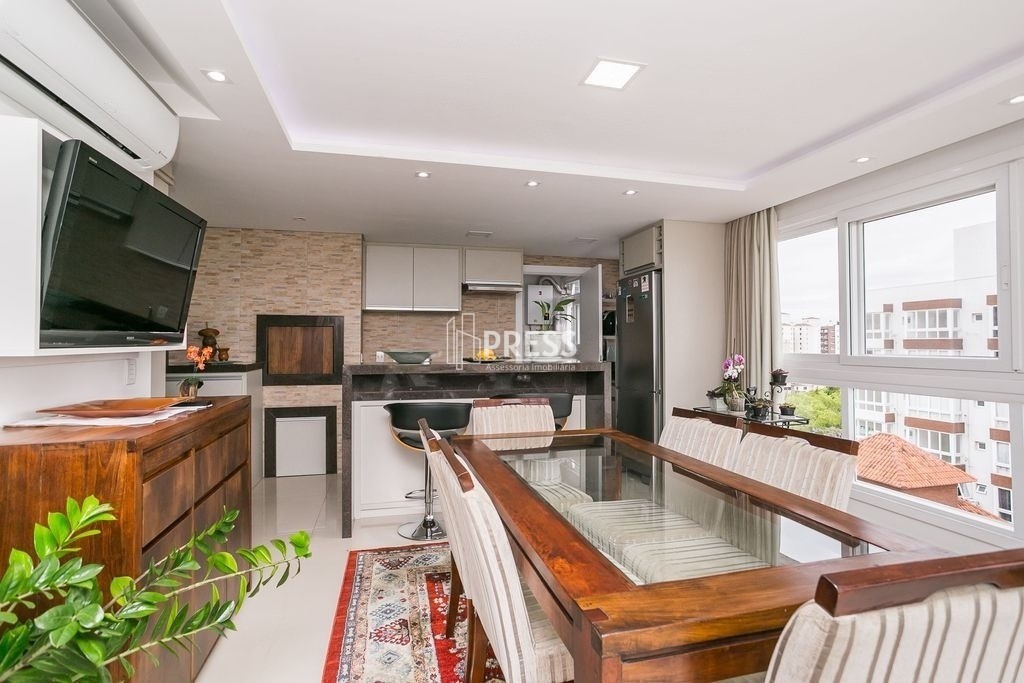 Andar alto com vista Guaíba + RooftopPRESS vende ótimo apartamento decorado (móveis sob medida) em andar alto com vista Guaíba com 03 dormitórios. 03 banheiros (suite, lavabo e banheiro social), cozinha americana com churrasqueira, área de serviço separada, 02 vagas de garagem cobertas e escrituradas.