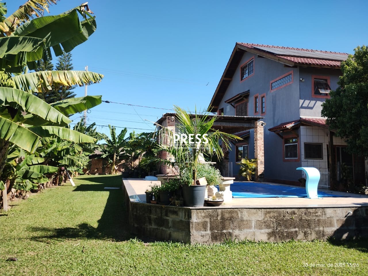 Press Imóveis vende ótima casa sobrado de 3 dormitórios, sendo um suíte, banheiro social, lavabo, piscina, sala e cozinha em terreno de 20x50 com árvores frutíferas.A casa se situa em um terreno com árvores frutíferas (pitaya, mirtilo, mamão, banana, etc) passando a sensação de sítio e liberdade. Possui estação de tratamento de água para 15mil litros, energia solar, piscina, cozinha e um sótão que atualmente é usado como espaço fitness.