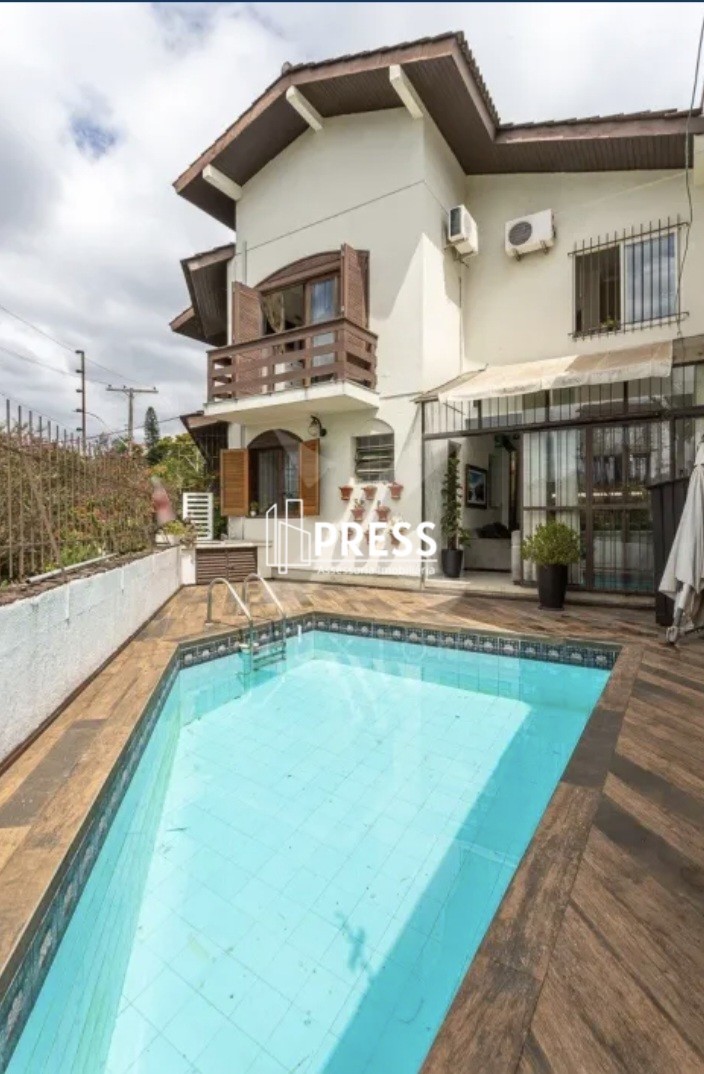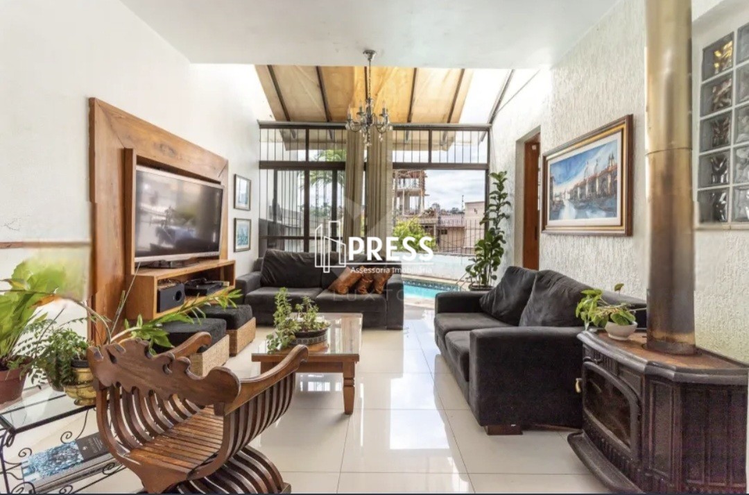 Press vende espetacular casa com 3 dormitórios, garagem para 4 carros, suíte, 3 banheiros, lareira, churrasqueira, piscina, área de serviço e muito mais.Se busca conforto, espaço e tranquilidade o imóvel é esse! Uma casa de dois andares, garagem para 4 carros, gás central, ventilação natural, bem iluminada, piscina térmica, pergolado, segura por cerca elétrica, quintal com área de serviço, churrasqueira, banheiro e cozinha para receber bem seus convidados. Ao entrar pelo hall de entrada você se depara com uma formidável sala com piso em tabuão, lareira, aberturas em madeira e portas grandes de correr, passa por cozinha espaçosa e sobe por uma linda escada de madeira para acessar 3 dormitórios com piso vinilico, banheiros com hidromassagem,cada um com closet , sacada para iluminação e ventilação direta.