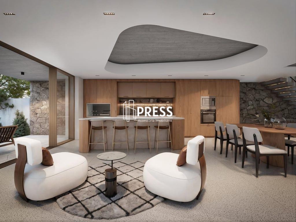 Press imóveis vende casa sobrado com 4 suítes, living com 60m², área externa, piscina, cozinha, lareira e garem.Casa com 4 suítes, sendo 1térrea e a master com 34,20m², living com 60m², área externa com varanda, piscina, esperas para soluções sustentáveis com ponto para